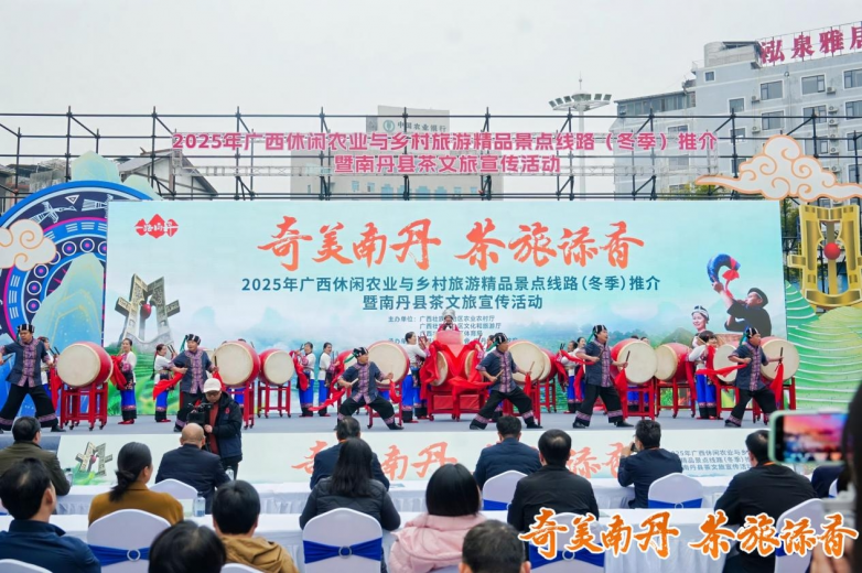 12月10日上午,由自治区农业农村厅、文化和旅游厅、体育局联合主办,中共南丹县委员会、南丹县人民政府承办的“2025年广西休闲农业与乡村旅游精品景点线路(冬季)推介暨南丹县茶文旅宣传活动”在河池市南丹县隆重举行。活动旨在展示广西农文旅独特魅力,推动广西生态优势转化为发展优势,助力乡村振兴。